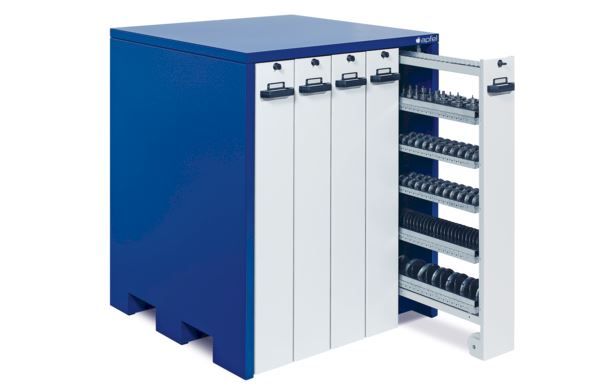 Armadio attrezzato per utensili tipo R2 con 5 cassetti verticali di 180 mm di larghezza. Carico max. di ogni cassetto 900 kg