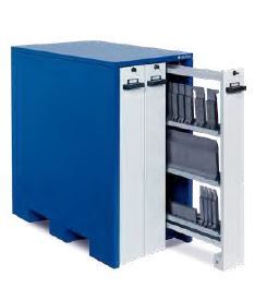 Armadio universale alto 1240 mm per utensili con 3 cassetti verticali di 180 mm di larghezza. Carico max. di ogni cassetto 900 kg.